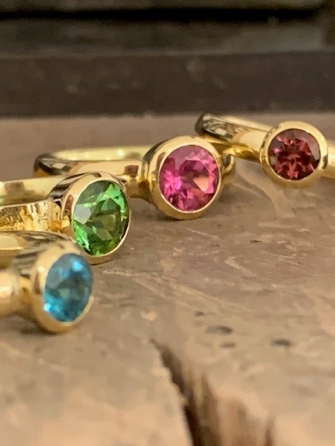 Bei uns bist Du beim Betreten des Geschäftes mitten im Geschehen, nur wenige Schritte von unserer Eingangstür steht unser Werktisch mit vier Arbeitsplätzen. Hier entstehen unsere Schmuckstücke in liebevoller Kleinstarbeit.